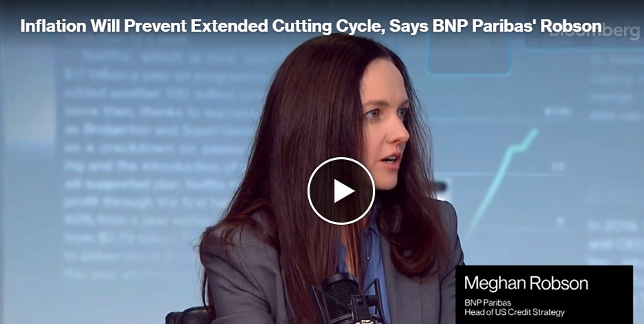 Meghan Robson, Head of US Credit Strategy at BNP Paribas, expects inflation to accelerate a bit in 2026 due to pressure on goods inflation. She sees one more rate cut next year but inflation will prevent the Federal Reserve from extending its cutting cycle. She speaks to Bloomberg’s Carol Massar, Tim Stenovec, and Michael McKee on ‘Bloomberg Businessweek Daily.’
